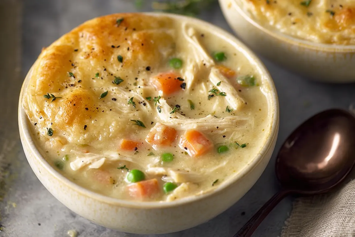Savor the comfort of Chicken Pot Pie Soup This recipe offers a deliciously creamy blend of chicken veggies and spicesperfect for cozy nights