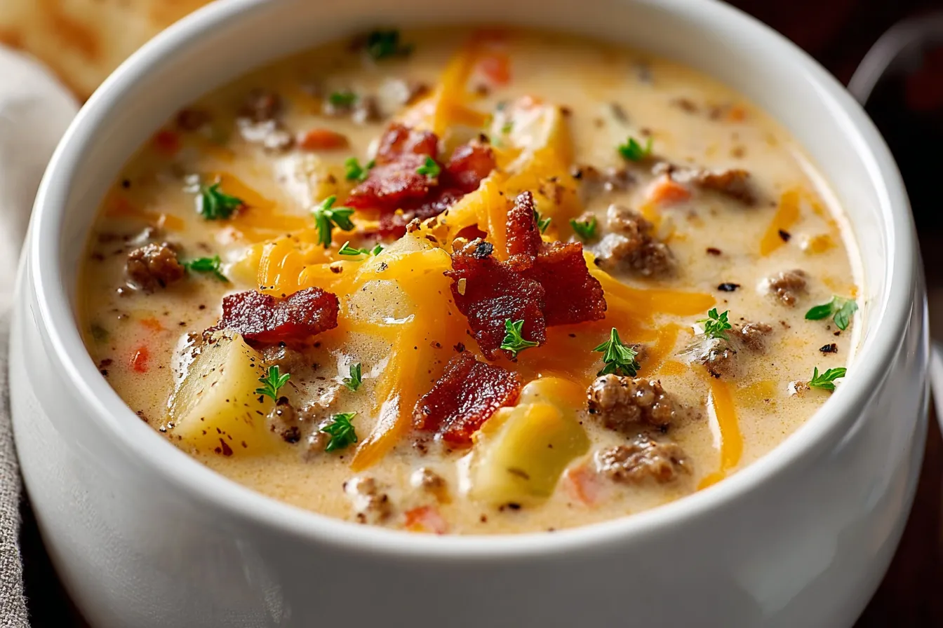 When life gets hectic and you’re juggling a million things at once, the last thing you want to worry about is what to make for dinner. Enter the easy cheeseburger soup—a comforting, hearty dish that brings together all the delicious flavors of a classic cheeseburger in a creamy, savory soup form. This recipe is not only quick to prepare but also allows you the flexibility to customize it to your family’s taste. Let’s dive into why this cheeseburger soup will soon become a favorite in your household.