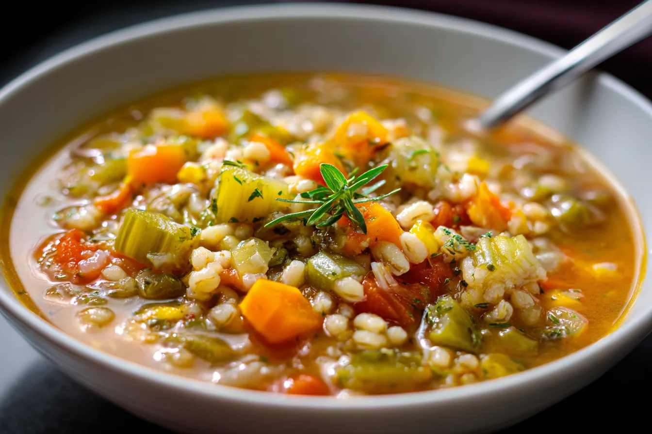 Savor this easy healthy Veg Barley Soup that brings comfort food to your table A hearty recipe perfect for any season Try it today