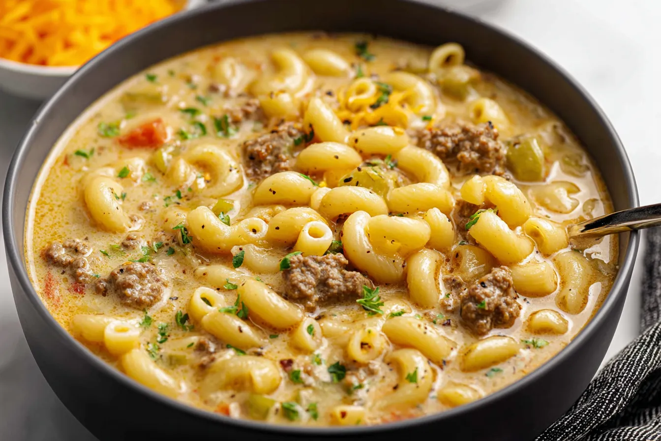 Savory One Pot Macaroni Cheeseburger Soup for Ultimate Comfort