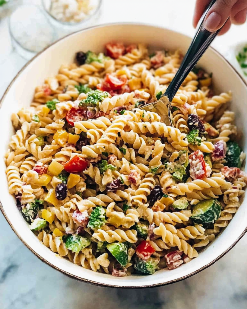 It started as a desperate fridge clean-out experiment. I had half a box of rotini, some sad-looking veggies, and a questionable amount of mayo. I threw it all together, crossed my fingers, and—miracle of miracles—it was amazing. Not just “I’m-hungry-so-anything-tastes-good” amazing, but “I-will-make-this-every-week-for-the-rest-of-my-life” amazing.
