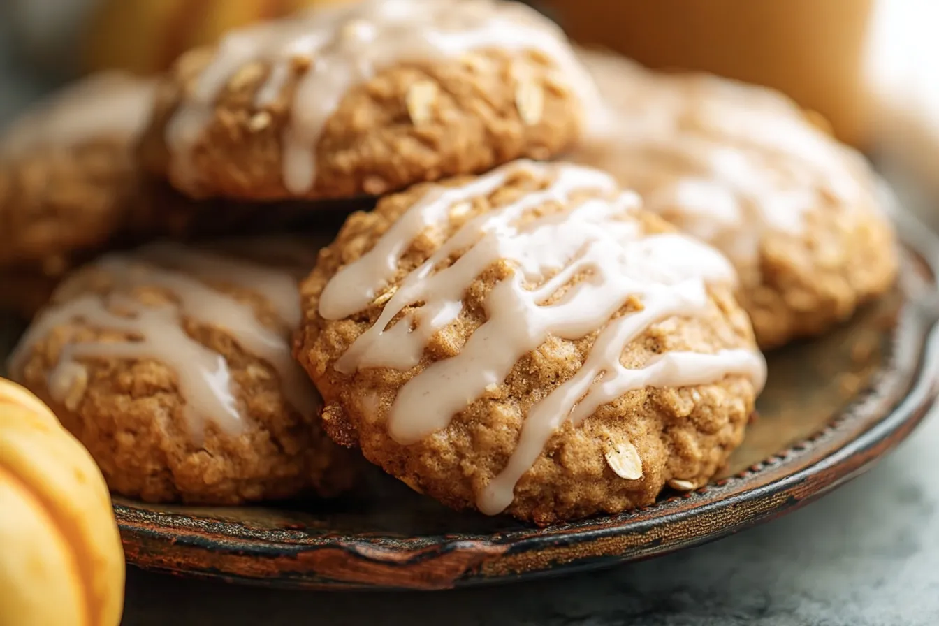 The BEST Iced Pumpkin Oatmeal Cookies